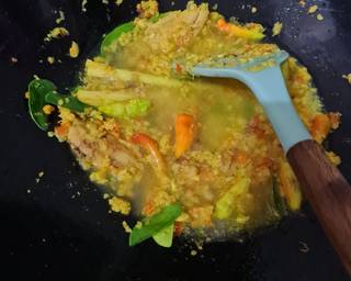 - Tumis Bumbu Halus, sampai harum. Tambahkan Bumbu Geprek, tumis sampai layu. Tambahkan air. Tambahkan garam gula kaldu, koreksi rasa