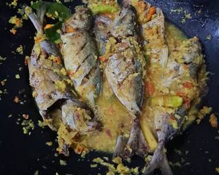 - Cuci bersih ikan dari Bumbu Rendam. Goreng sampai kecoklatan, jangan terlalu kering