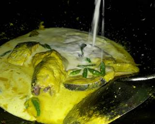 - Setelah bumbu meresap ke Ikan, masuk kan santan. Aduk hingga merata. Tambahkan gula dan garam, cek rasa.
