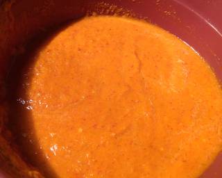- Siapkan bumbu, lalu blender hingga halus. Tambahkan garam, gula dan kaldu jamur, aduk rata. Cicipi dan koreksi rasa.